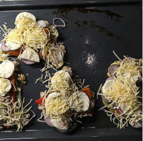Uit de tuin eten: bloemkoolpizzaVoor dit recept heb je een bloemkool en een puntpaprika nodig. Met een compacte kool gaat het makkelijker dan met een erg losse kool.Neem een flinke bloemkool en leg hem ondersteboven op een snijplank. Verwijder de groenen bladen maar laat de stronk zoveel mogelijk zitten. Snij 4 plakken uit de bloemkool. Leg de plakken op een bakplaat, samen met een grote puntpaprika, bestrijk de groente dun met olie. Schuif de bakplaat in de oven, stand gril + hete lucht op 180 graden. Na 20 minuten zal de bloemkool gaar zijn, de paprika moet je halverwege keren. Verwijder de zaadjes en het vel van de paprika en snij er 4 plakken van. De bloemkool krijgt een laagje rode of groene pesto en daarop een plak paprika. Verder beleg je de ‘pizza’ met wat je maar wilt, uienringen, sardientjes, tomaat enz. Afdekken met mozzarella of gemalen kaas en nog een kwartier de hete oven in. In plaats van bloemkool kun je ook een plak knolselderij gebruiken. Dit gerecht kun je prima vegetarisch of veganistisch klaarmaken, 2 personen hebben er een maaltijd aan, of het is een lunchgerecht voor 4. Terug naar tuintafel
