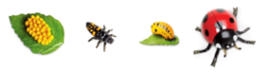Het lieveheersbeestje kent 4 stadia in zijn leven: ei,